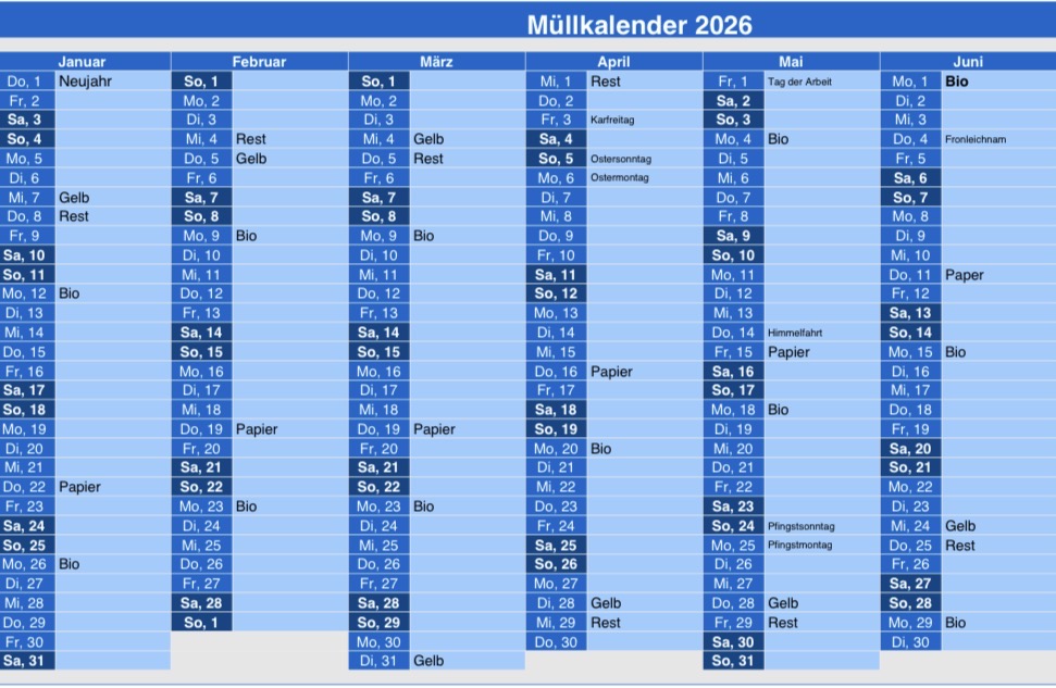 Müllkalender Wenkbach 1. Halbjahr 26